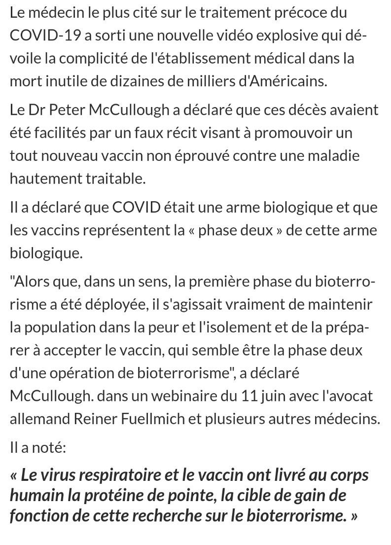" Pour être clair, le vaccin n'est pas un médicament, mais une arme biologique présentant toutes sortes de toxicités. Tant de personnes sont mortes à cause de la distribution de l'arme biologique. C'est un massacre"