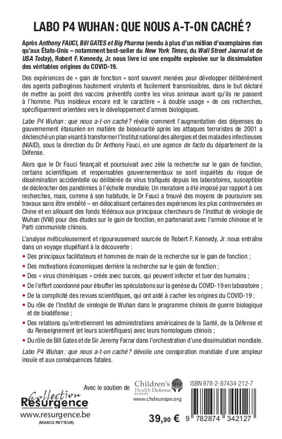 "Francis Boyle décrit le laboratoire de Galveston comme une installation de recherche sur les armes biologiques à peine voilée qui « recherche des agents de guerre biologique potentiels dans la nature, dans des régions exotiques du globe, afin de les transformer en armes biologiques ». Boyle ajoute : « Ils devraient fermer Galveston. Ce laboratoire est une entreprise criminelle qui opère en violation flagrante de la Convention sur les armes biologiques et qui se livre à des activités scientifiques extrêmement dangereuses pour l’humanité, sans aucun bénéfice démontré. » Boyle m’a confié que Galveston s’amuse avec des alchimies qui pourraient facilement tuer de grandes parties de la population humaine dans le monde entier. Chaque jour, ils ouvrent une nouvelle boîte de Pandore qui menace de lâcher un nouveau fléau sur le monde. Leur ambition est de créer une maladie infectieuse ayant le pouvoir meurtrier de la peste bubonique, qui a tué 30 à 50 % de l’humanité au XIVe siècle. C’est littéralement de la folie. Anthony Fauci fournit à Galveston un nombre quasi illimité de dollars du contribuable pour que ce cauchemar devienne réalité. Il s’agit de créer délibérément des microbes qui sont à deux doigts de tuer des milliards d'êtres humains."