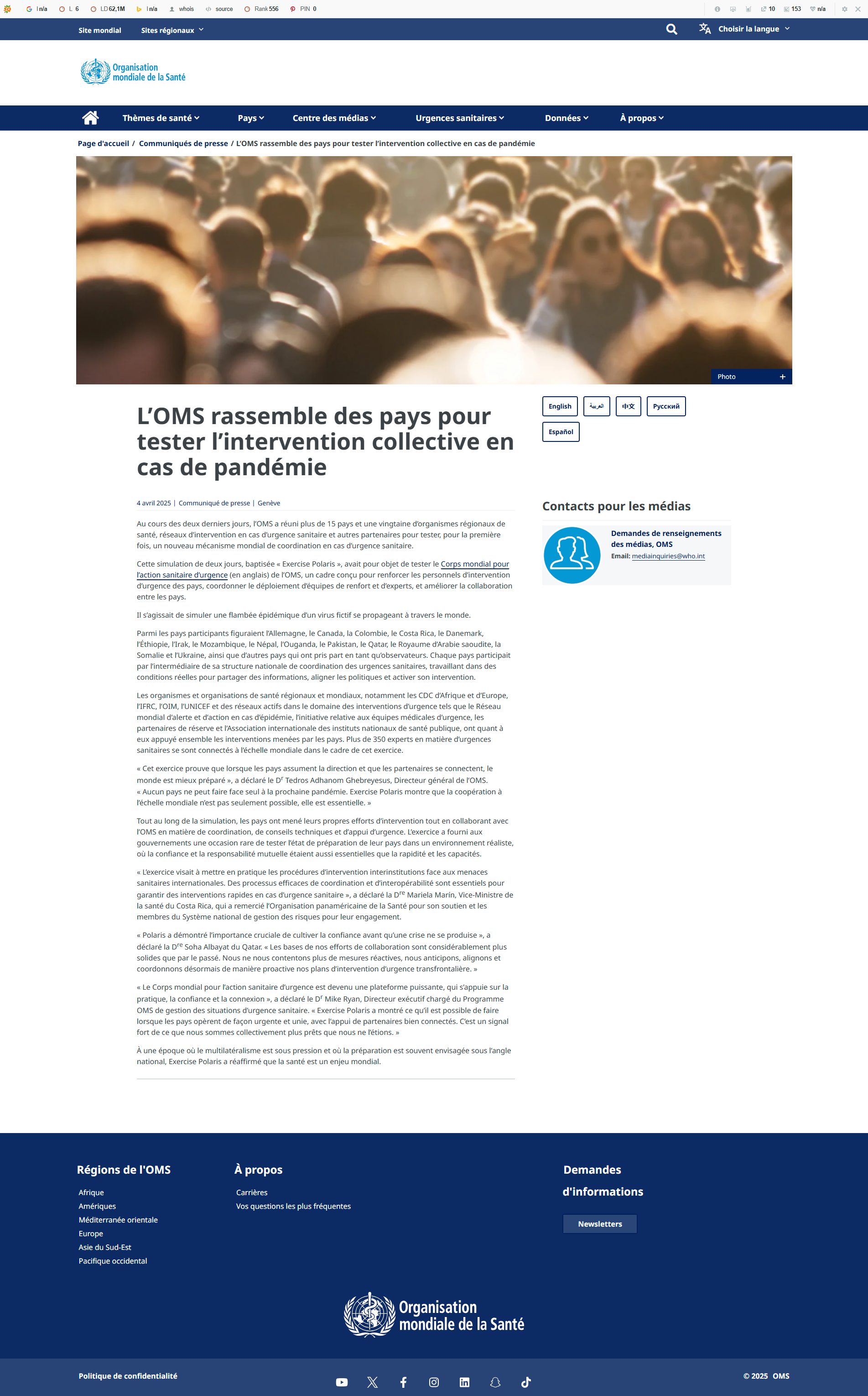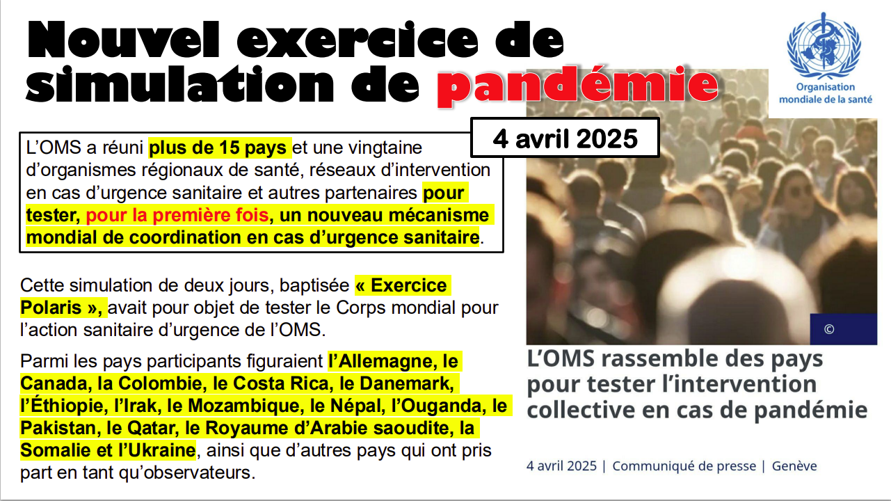 L’OMS rassemble des pays pour tester l’intervention collective en cas de pandémie